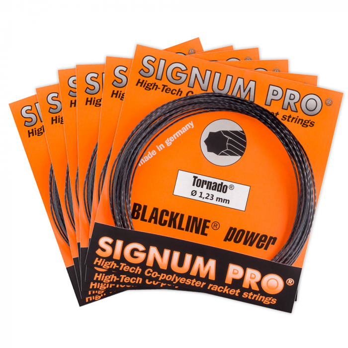 A Signum Pro é uma empresa de operação mundial na indústria do Tênis e oferece uma gama de produtos únicos e de alta qualidade. Os resultados estão aí para provar, os jogadores do time Signum Pro estão constantemente entre os tops da ATP. Então, não fique de fora, não deixe de conhecer a Corda Signum Pro Tornado 1.23mm Preta - Set Individual - Pack com 06 Unidades, ela possui nova estrutura molecular, desenvolvida em co-polímeros de poliéster de alto desempenho em formato hectagonal, ela oferece spin excepcional e muito mais controle de bola.