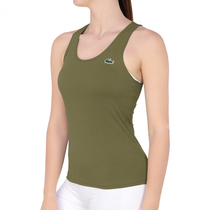 - Detalhamento: Regata estilo nadador, decote arredondado, tecido leve e resistente, logo da Lacoste na parte direita do peito;